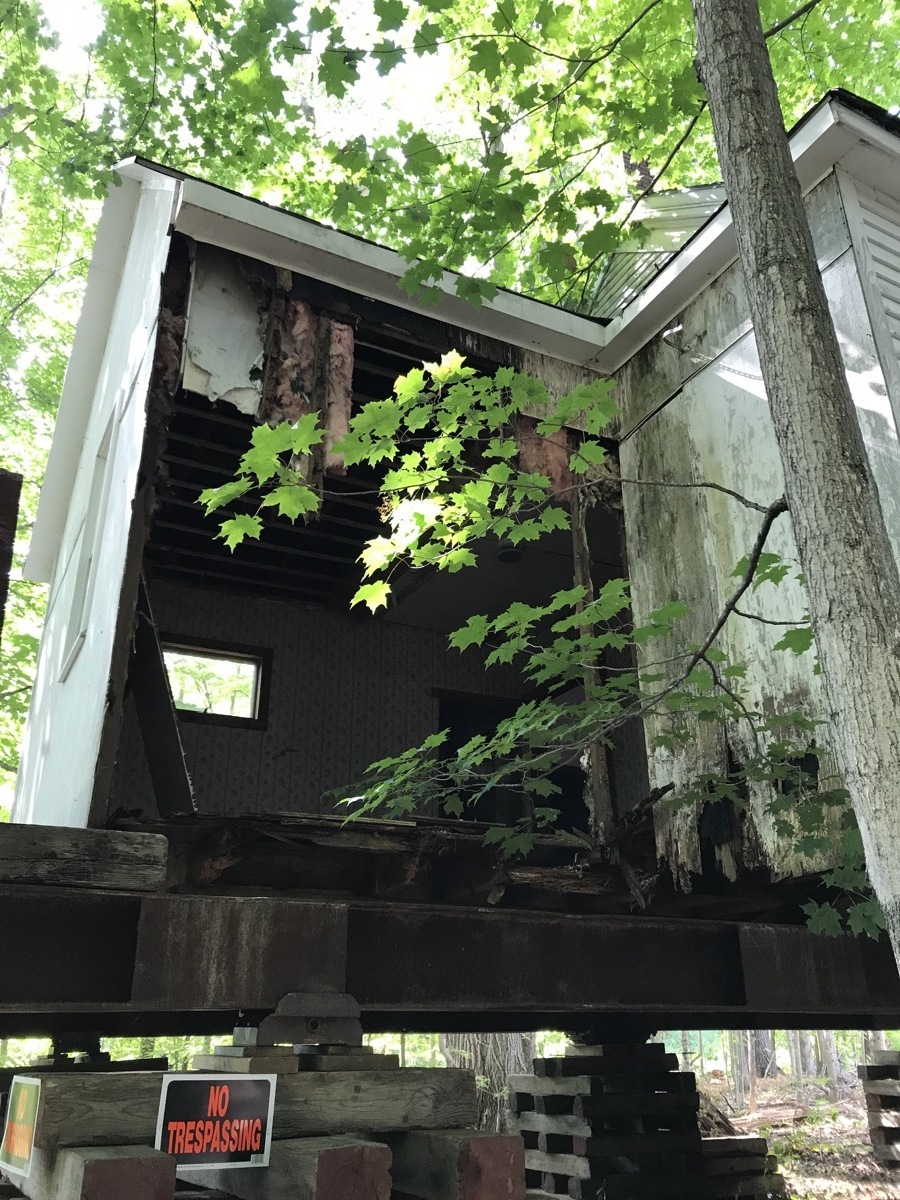 On Thursday, another problem presented itself. The back addition to the original building needed more reinforcement in order to move it with the rest of the school. The addition sill and one wall were too rotted to support the move. Support beams were placed differently to safely allow the move.