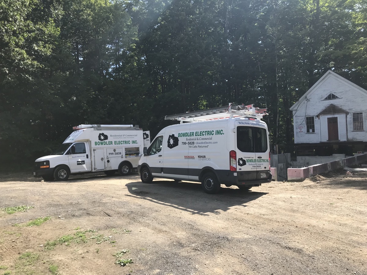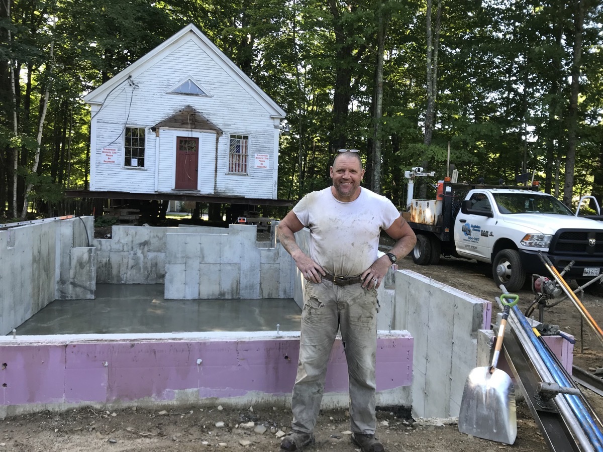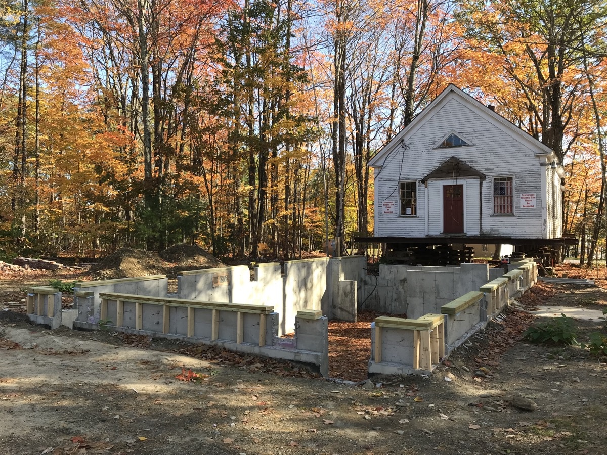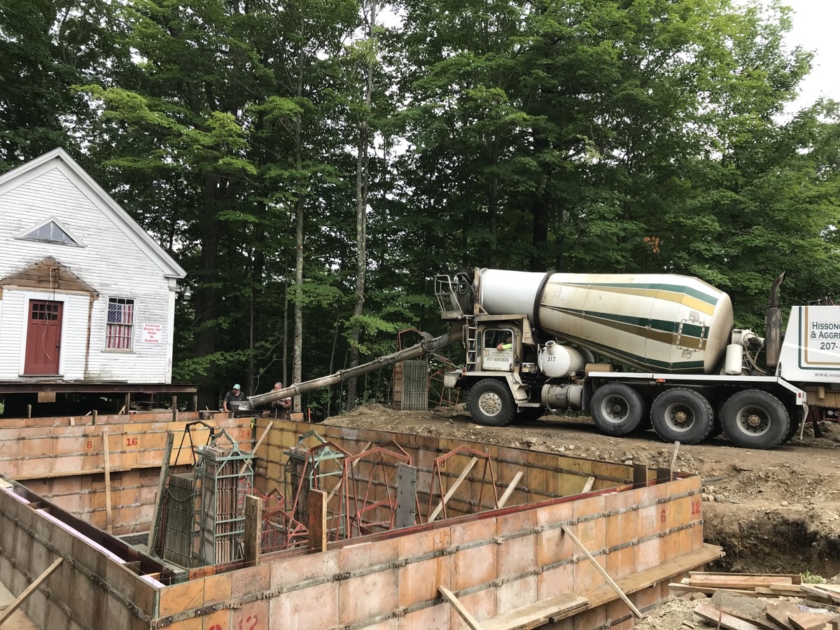 During the week of July 8th, Merry and Sons Movers began work on preparing the building’s move. Their goal was to move it in 4-5 days. The excavator asked that the building be moved from the area of the foundation and then moved back. Merry and Sons agreed to move in it back rather than to the side as originally planned, allowing more room for the foundation work to take place. Trees needed to be limbed before this move. Scarborough Public Works came quickly to our rescue. We truly appreciate their timely help.